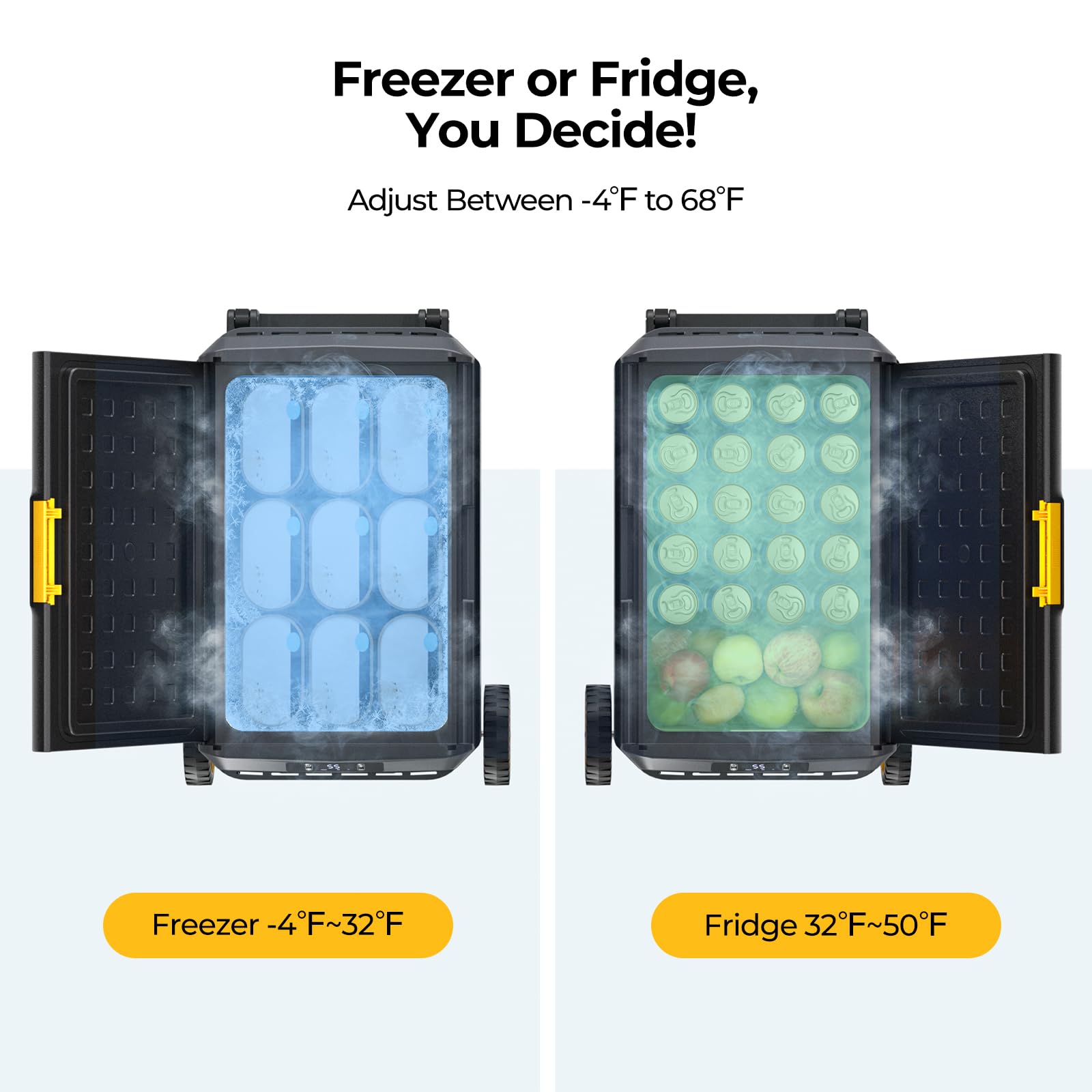- 15-minute Fast Cooling: At an ambient temp of 77℉, the 12 volt refrigerator takes 15 minutes to cool down from 77℉ to 32℉ when used as a single zone (fridge condition: empty and set to max mode), helping you keep your food fresh. No ice needed, no food spoiled
