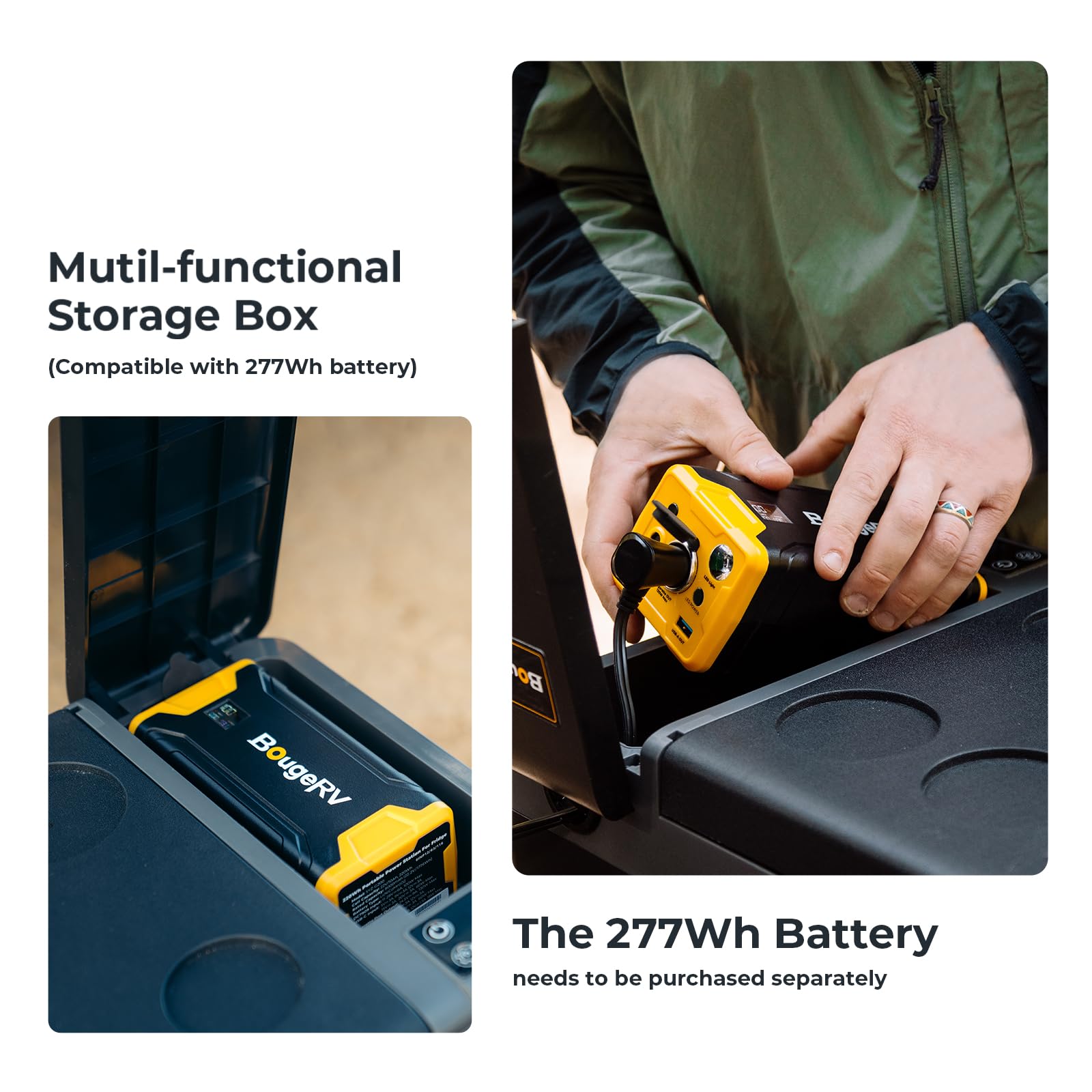 - Generous Storage Box: The CRPRO refrigerator comes with a storage box, you can put the 220Wh power station and accessories into it, which can extend the use time of the refrigerator and prevent the wires from being lost. If you need it, please search "BougeRV 220Wh Portable Power Station" on Amazon