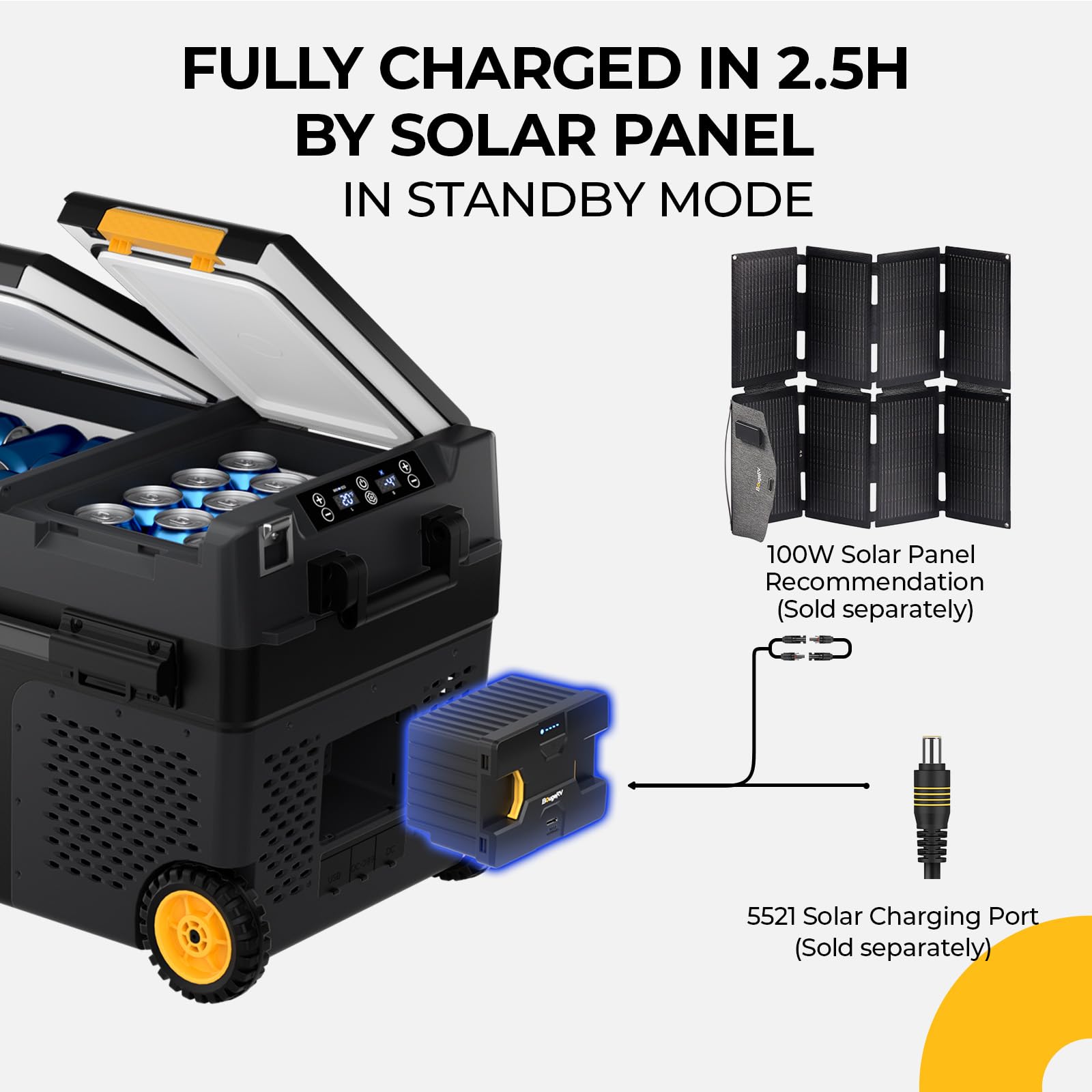 - Multiple Charging Methods: Put the battery into a portable refrigerator (DC 12/24V and AC 100-240V) or in a solar panel (12-50V) for charging. It is recommended to turn off the power of the refrigerator when charging the battery. Note: The battery package doesn't include an adapter. For safety reasons, we've excluded it. To charge the battery, please place it in the refrigerator