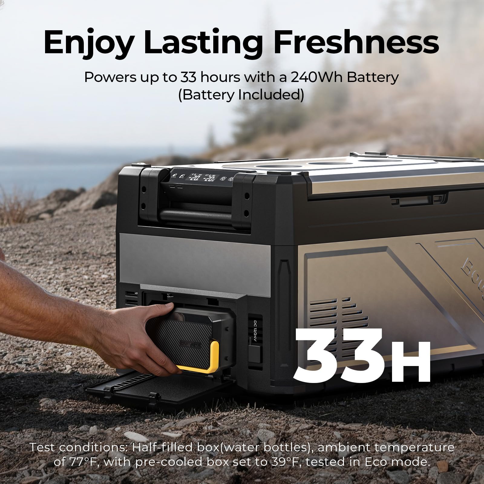 BougeRV 41 Quart Rocky V3.0 12 Volt Portable Refrigerator with 240Wh Battery, Dual Zone Car Fridge Freezer, APP Control, Compressor Cooler for Overlanding, Camping, Travel, RV, Truck(2026 New Model)