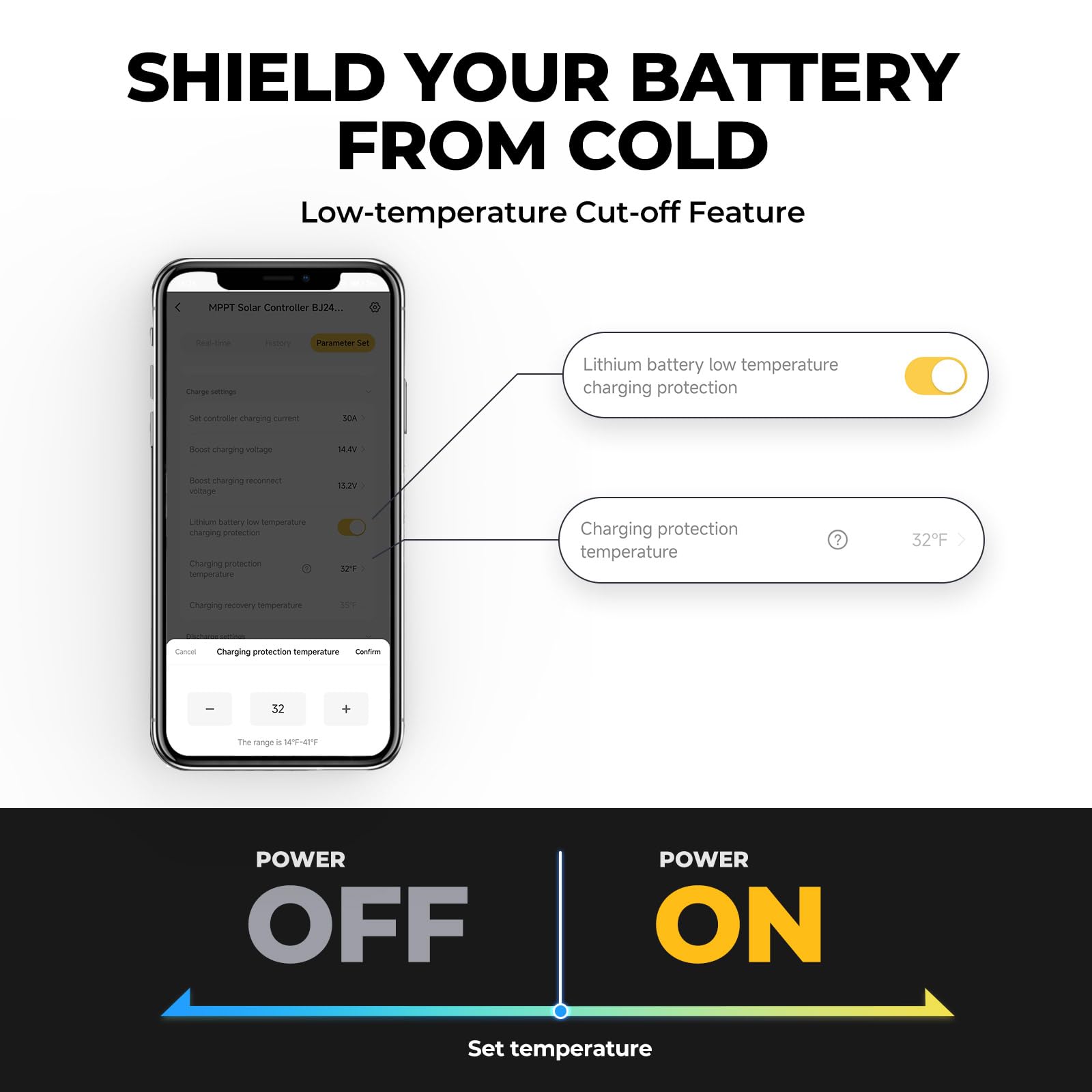 - FULLY COMPATIBLE WITH LiFePO4: BougeRV Sunflow 40A MPPT solar charge controller features low-temp cut-off charging (below 32℉) to protect your LiFePO4 battery, it can also restart or activate dormant 12V or 24V LiFePO4 batteries turned off due to short circuits or over-discharged.