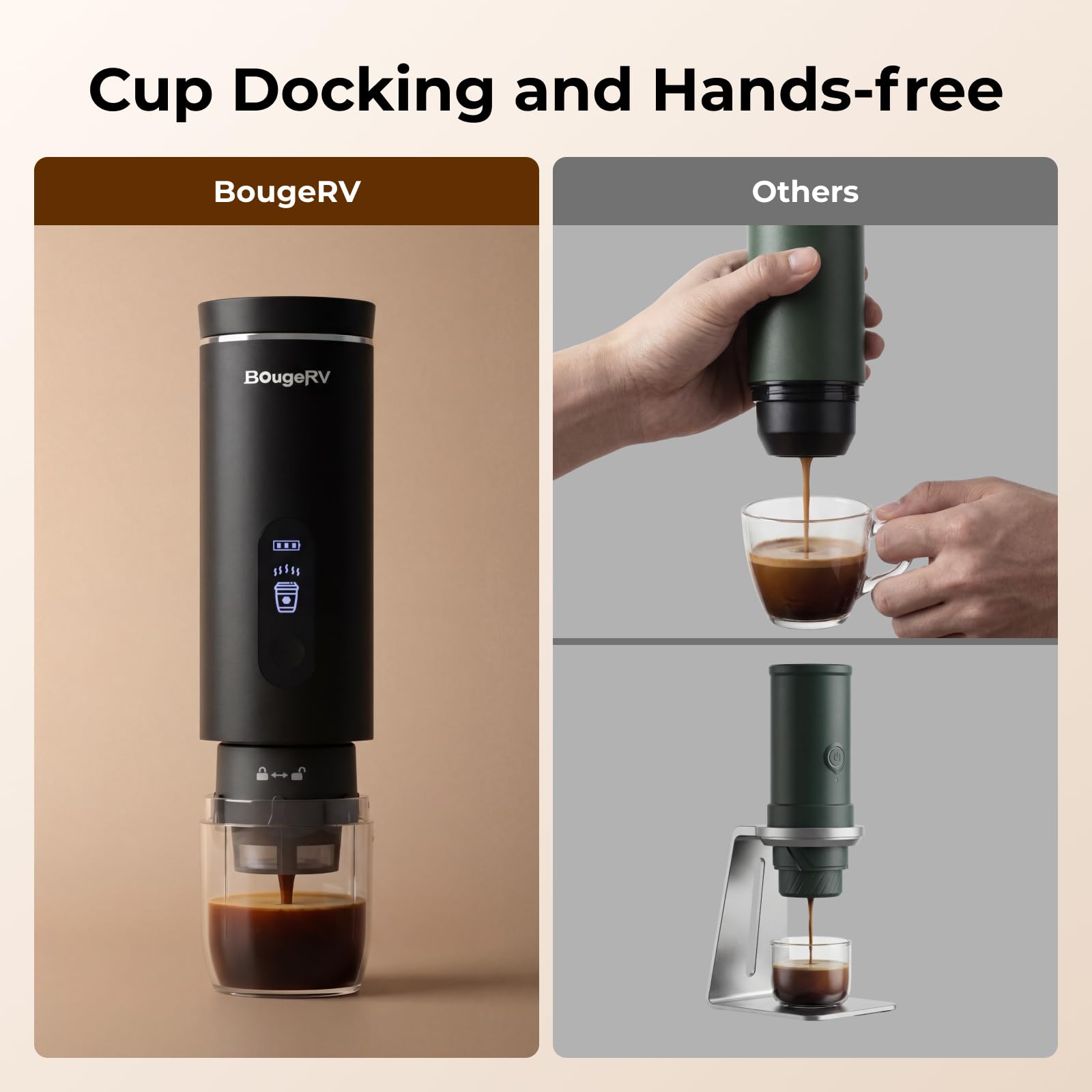 BougeRV Portable Drip Coffee Maker Compatible with K Cup & Ground Coffee, Electric Car Coffee Machine Self-Heating LCD Display USB-C for Travel, Bussiness Trips, Hotel, Camping, Office, Outdoors