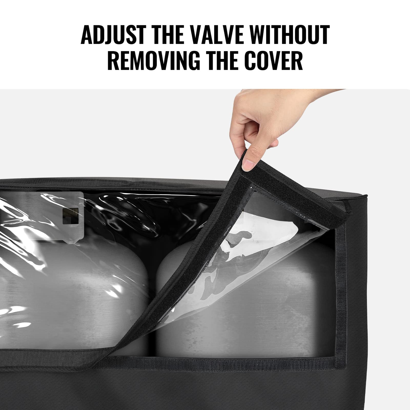BougeRV Propane Tank Cover, Visible Valve, Fit Dual 20lb Tanks, Waterproof 600D Oxford Replacement Covers for Trailer/Camper, RV Parts Accessories (Black)