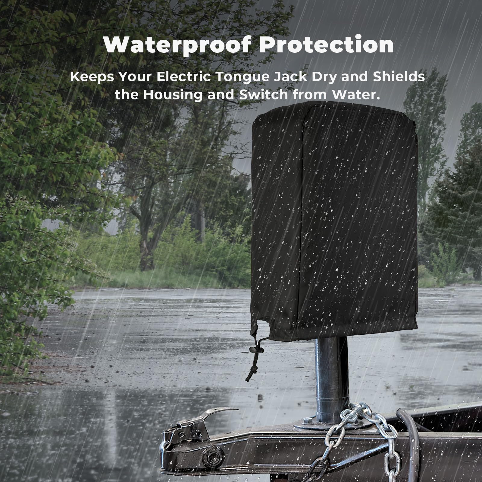 - Quality: The 600D polyester fabric offers high tear strength. Constructed from 600D waterproof Oxford fabric, the BougeRV jack cover ensures your tongue jack stays dry